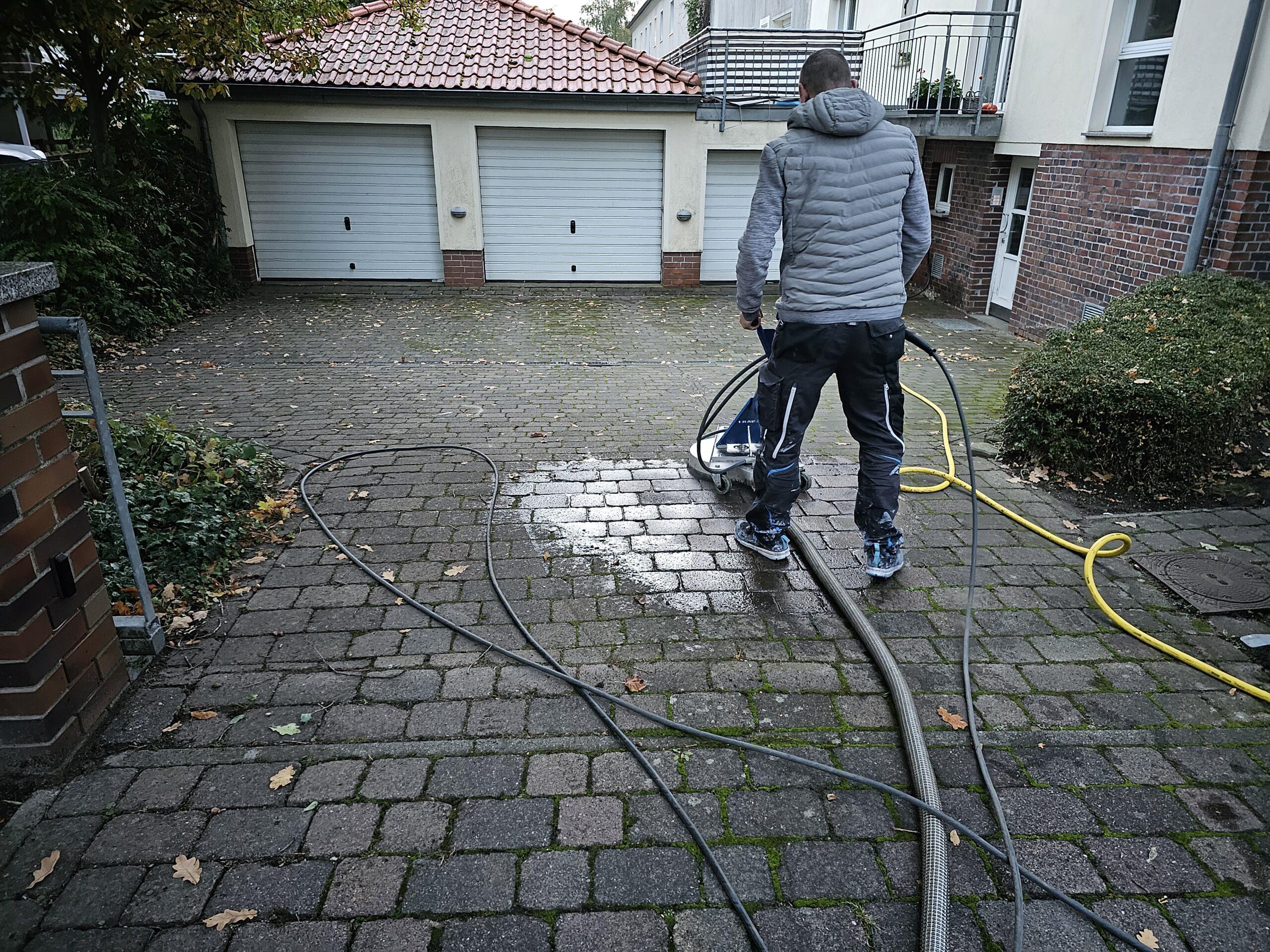 Moos, Algen und Schmutz setzen sich in Fugen und auf Pflastersteinen fest. Mit unserer professionellen Pflasterreinigung entfernen wir Ablagerungen schonend, verbessern die Optik und erhöhen die Sicherheit deiner Außenflächen.